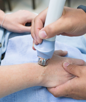 체외충격파는 음속보다 빠르게 몸속으로 전달되는 압력 파동을 의미하며 통증을 일으키는 부위에 1,000~1,500회의 충격파를 쏘는 비침습적 치료법입니다.